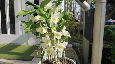 そして2年前の雄一の七回忌にヨメが買ってくれたテンドロビウムの子孫。枝分けして今は3つの鉢に分けて植えてあるが、その一つの鉢から可愛い白と紫の花が咲いて来た。もう一つの鉢ももうすぐ咲いて来そうだ。テンドロビウムは欄の種類の様で植え替えは難しいらしい。僕も欄は植え替えて枯らしてしまったが、テンドロビウムはネットで良く調べながら枝分けした。その鉢から今年は花が咲いたよ。命がつながった。。嬉しいなあ。